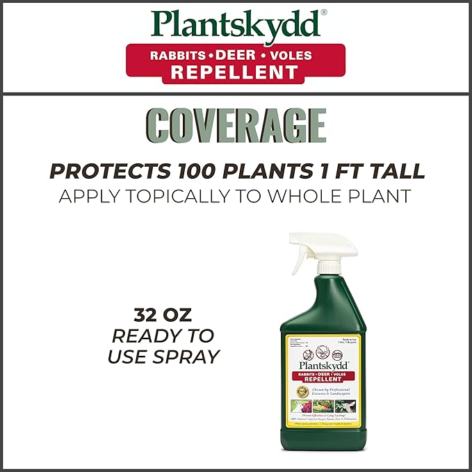 Plantskydd Animal Repellent - Repels Deer, Rabbits, Elk, Moose, Hares, Voles, Squirrels, Chipmunks and Other Herbivores; Ready to Use Liquid - 32 Oz Spray Bottle (PS-1L)