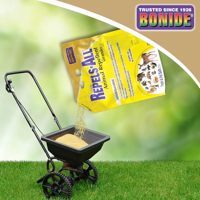 - Repels-All Animal Repellent Granules from Bonide act as a strong, natural repellent to a wide variety of pests in your yard, garden and flowerbeds; use this product to deter pests and keep them from coming back