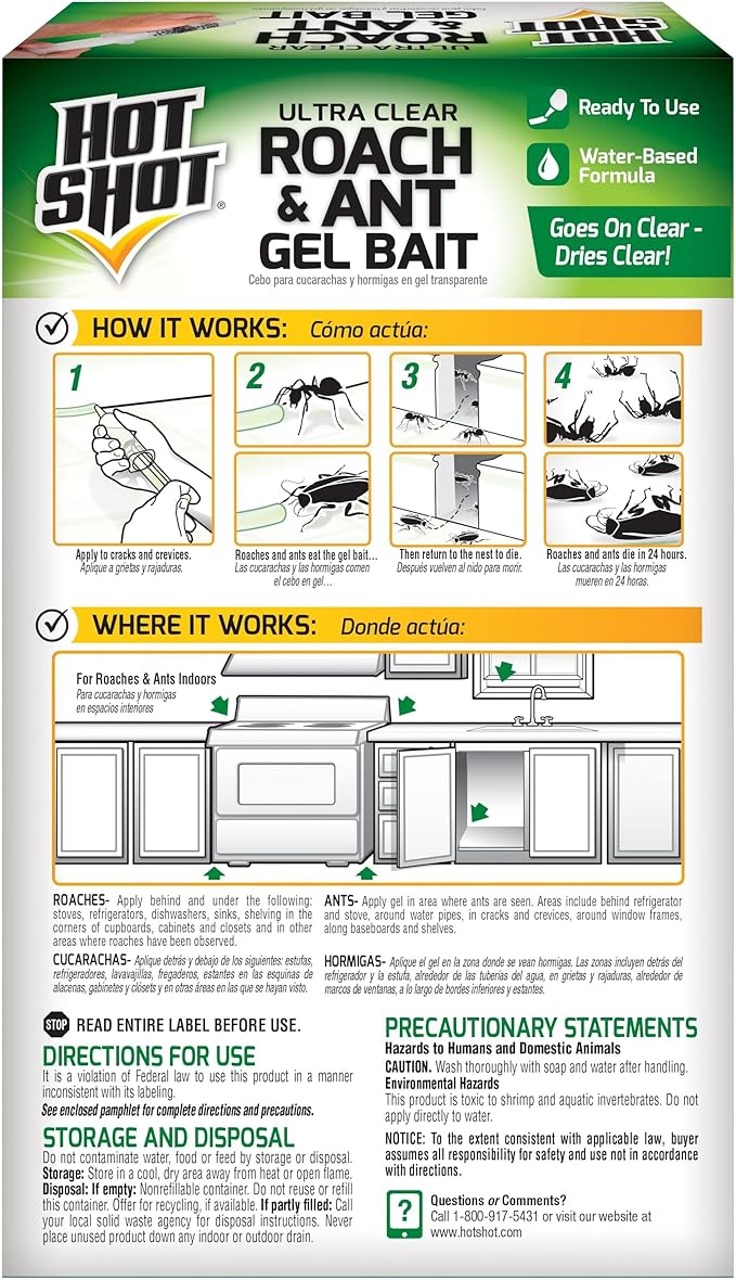 - QUICK KILL FORMULA: Hot Shot Ultra Clear Roach & Ant Bait starts to work in minutes and keeps killing for up to three months.