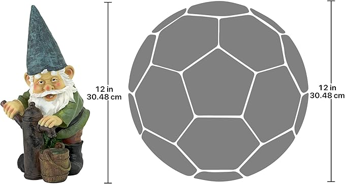 Design Toscano Garden Gnome Statue - Water Pump Pete Garden Gnome - Lawn Gnome Full Color