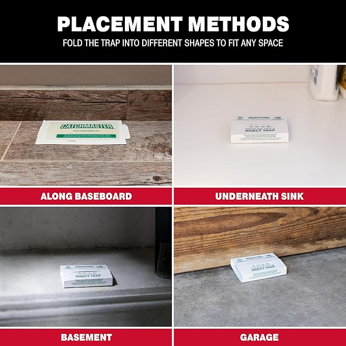 - YEAR-ROUND CONTROL: Catchmaster glue traps are pesticide-free and no-mess. The sticky bug catcher traps are an effective and easy solution for insect and rodent problems. When placed in an area with normal conditions, the insect and spider traps can last up to one full year.