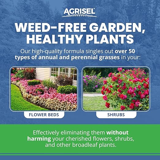 - WEED-FREE GARDEN, HEALTHY PLANTS: Our high-quality formula singles out over 50 types of grassy weeds in your flower beds and shrubs, effectively eliminating them without harming your cherished flowers, shrubs, and other broadleaf plants. PLEASE NOTE: This product kills grass. Be cautious when applying near lawns or areas with desirable grasses.
