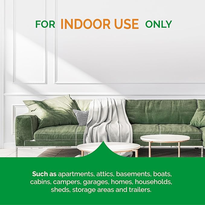 - WHERE TO USE: Use in enclosed spaces such as apartments, attics, basements, barns, boat cabins, cabins, campers, crawl spaces, garages, homes, households, sheds, storage areas and trailers