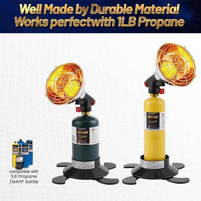 - Efficient Small Propane Heater: GasBRUH propane heater featuring a stainless steel burner and a heat trap shield, this design ensures both durability and efficiency. The all-aluminum reflector enhances heat output, keeping you warm and providing consistent, reliable warmth with superior quality.