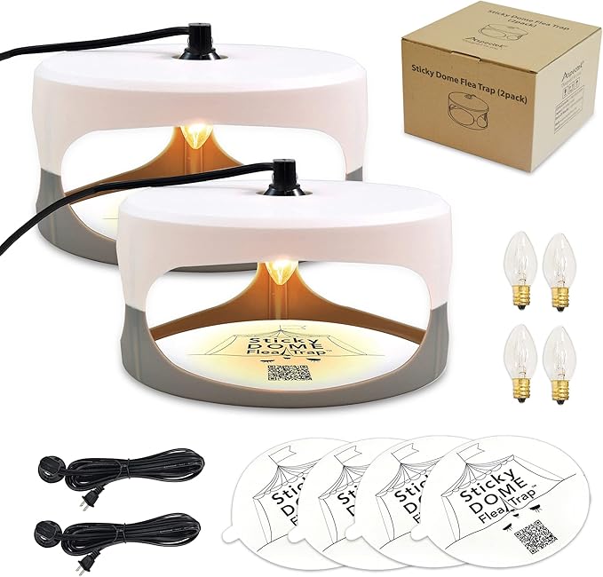 - Complete 2-Pack Kit with Refills: Includes two flea traps, four glue discs, and four bulbs for extended use. Refills are readily available to maintain continuous indoor pest control.