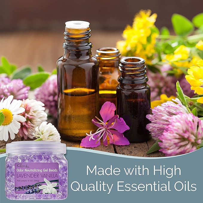 Clear Air Odor Eliminator Gel Beads - 12 oz, Pack of 2 - Air Freshener Made with Essential Oils - Eliminates Odors in Bathrooms, Cars, Boats, RVs & Pet Areas - Lavender Vanilla Scent