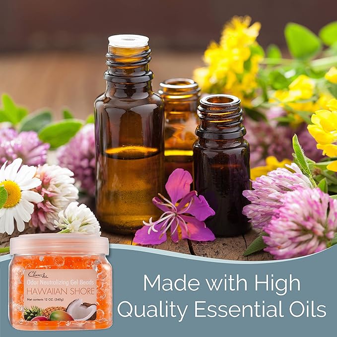 Clear Air Odor Eliminator Gel Beads - 12 oz, Pack of 2 - Air Freshener Made with Essential Oils - Eliminates Odors in Bathrooms, Cars, Boats, RVs & Pet Areas - Hawaiian Shore Scent