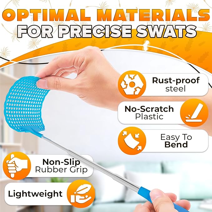 - Adjustable Length: The retractable fly swatter extends from 10 to 29 inches, making it easy to reach bugs even on ceilings. Good for flexible use, these fly swatters heavy duty adapt to any space