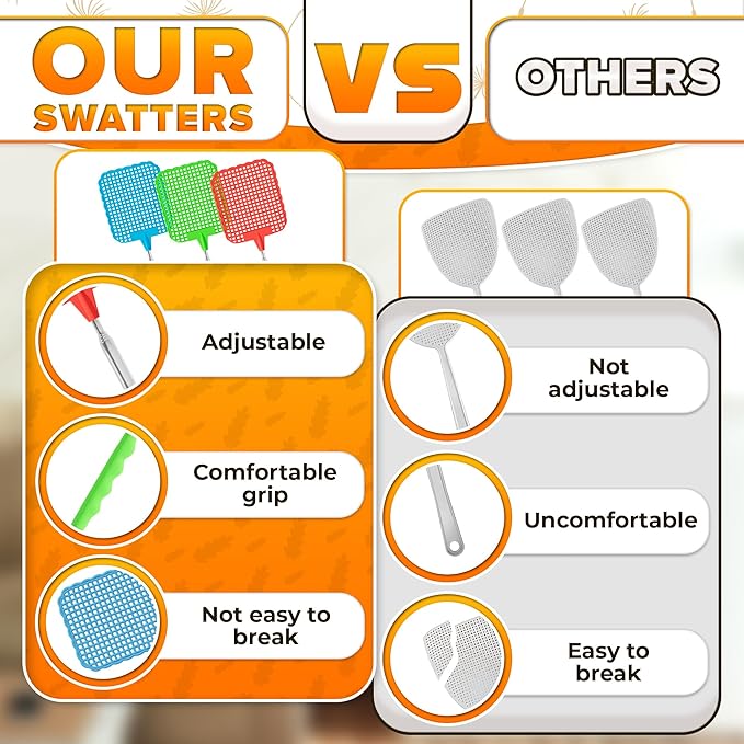 - Good for Summer: Summer means flies, but this fly swatters for indoors set keeps them away with no mess. Each telescopic fly swatter folds down small for drawers, cars, or travel bags