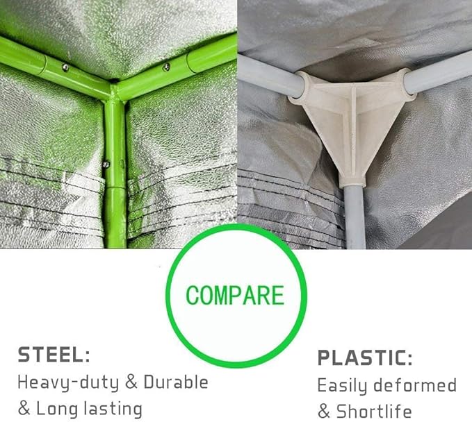 - HIGH QUALITY & PVC FREE: This indoor growing tent with heavy-duty zippers with black lining and double stitching for light protection ensure durability and long-lasting use. And we use peva environmentally friendly materials, which is PVC free. 600D Thick tent material reinforced by the metal poles ensures security and stability.