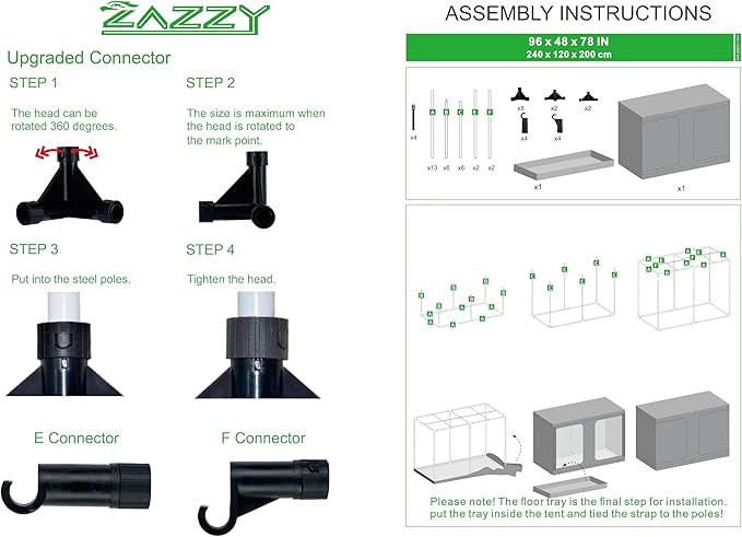 - 【Top-Quality Materials and Sturdy Frame】Zazzy plant grow tent made of superior quality reflective 600D mylar and double stitched to ensures the light blocking. Heavy duty all steel poles which are rated to handle at least 110 lbs. The frame is specially finished to ensure smooth installation and safe handling.