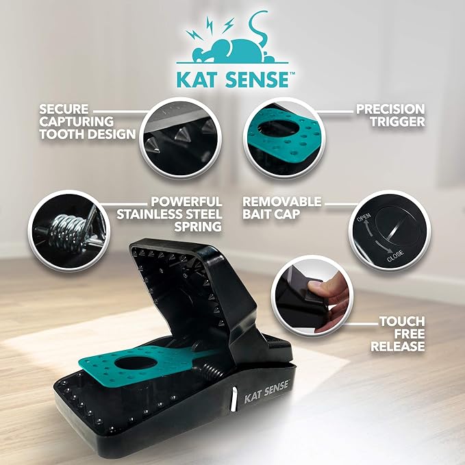 - Successfully Capture Rats – No Escape - Forget about false triggers, stolen bait and escaping mice. Kat Sense rat traps feature a powerful, highly responsive snap mechanism with a sensitive pedal and specially designed teeth to seize mice and rats every time. The improved, humane design ensures that rodents are killed fast and with as little pain as possible.