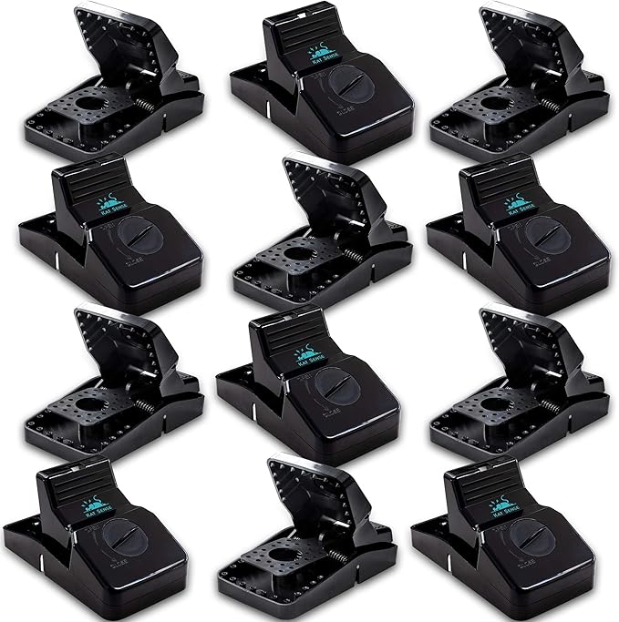 Kat Sense Rat Traps for House (12 Pack) Humane Rodent Trap for Instant Kill Results, Easy to Use Mouse Traps, Effective Anti-Rodent Solution, Reusable, Indoor ‘N Outdoor