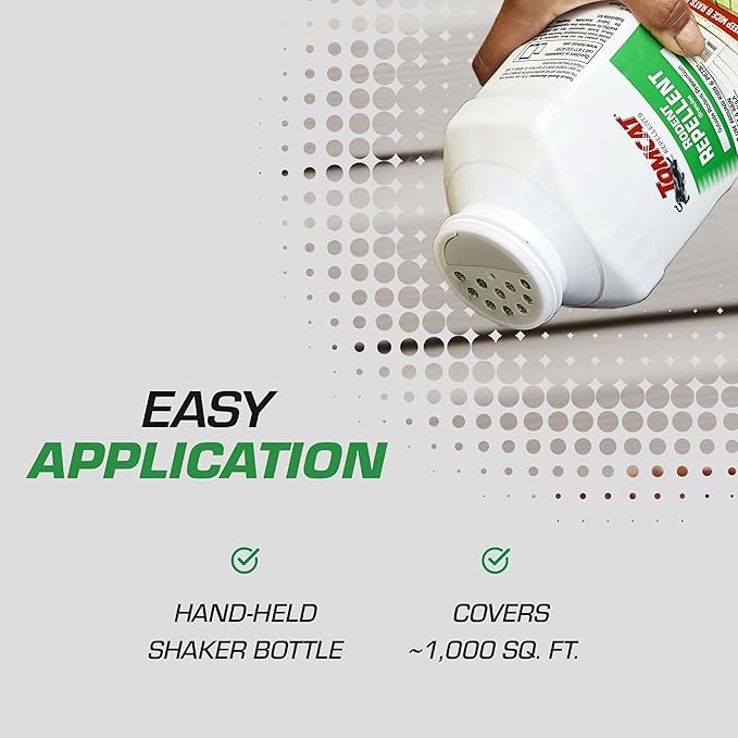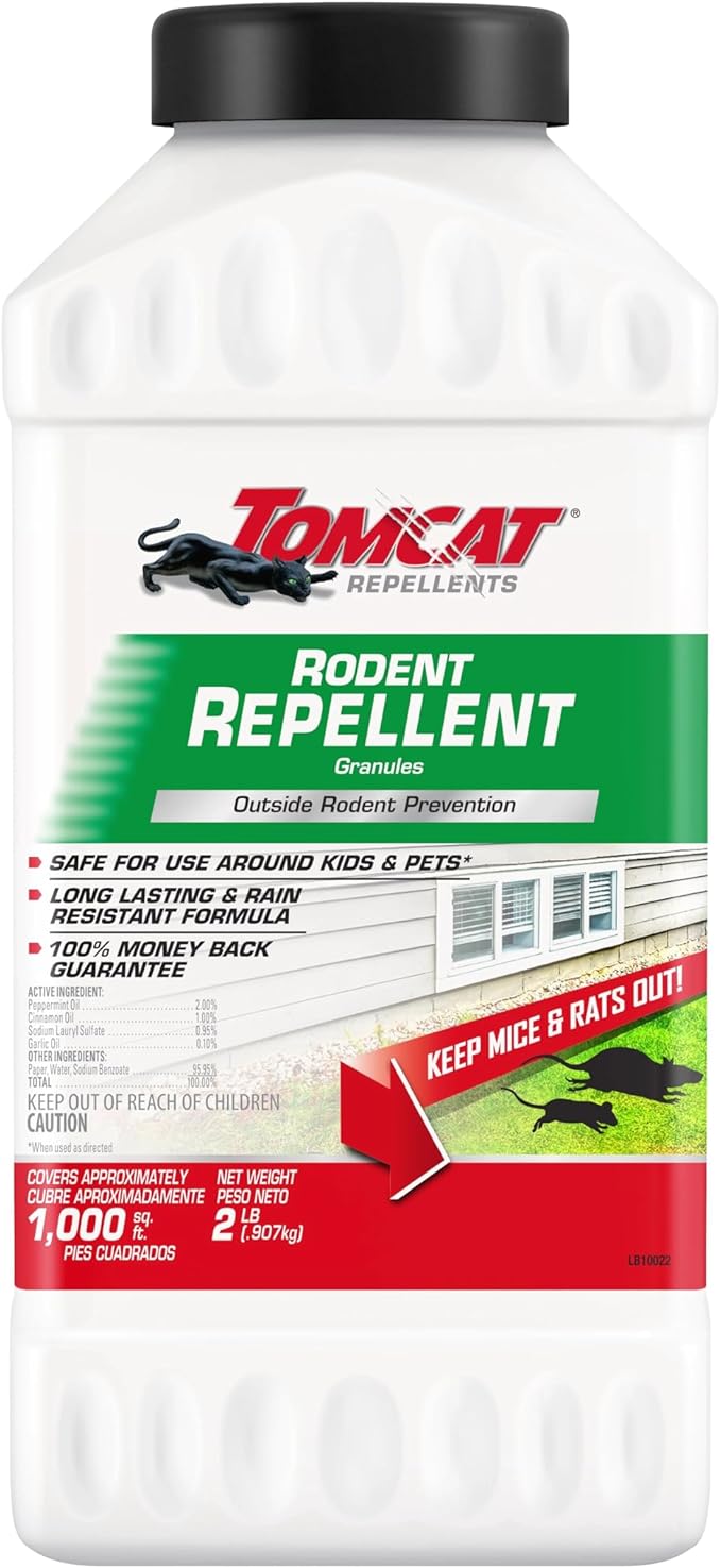 - Tomcat Repellents Rodent Repellent Granules prevents rodent entry, nesting, and foraging outdoors