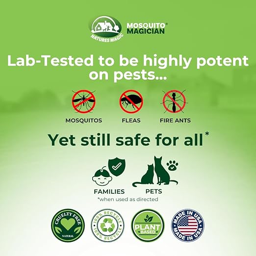 - KILLS MOSQUITOES, FLEAS & FIRE ANTS – Mosquito Magician Liquid Concentrate is LABORATORY TESTED to kill 100% of mosquitoes, fleas, and fire ants within 24 hours. Perfect for large outdoor spaces like yards, patios, and lawns, it’s an effective mosquito yard spray and mosquito treatment for yard. (Lab test reports are available upon request.)