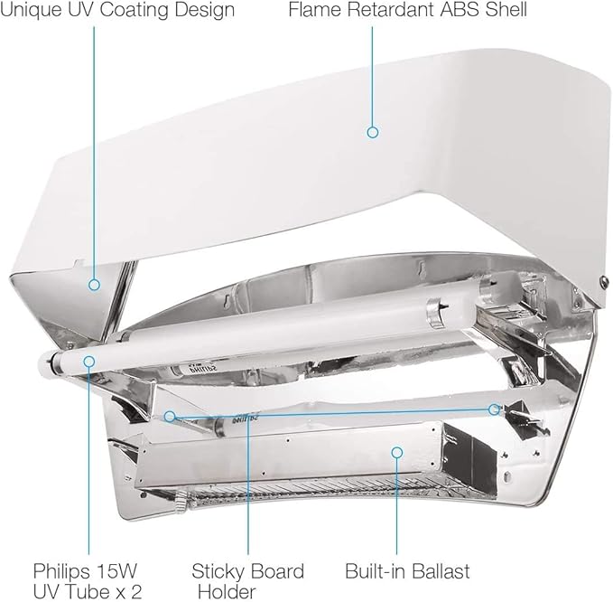 - Work in Silence - Luring flying insects with special violet light and then capturing them on the special glue boards, killing them softly and no more annoying popping noise.