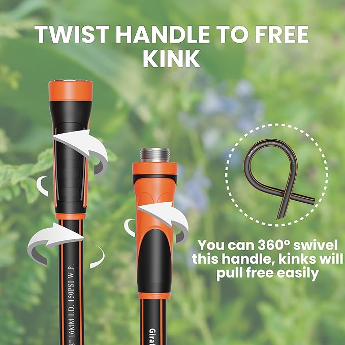 - Tangle-Free Convenience with Swivel Handle: Say goodbye to frustrating kinks and twists! Our hose features a smooth swivel handle for tangle-free operation, ensuring a seamless and effortless watering experience every time you use it.