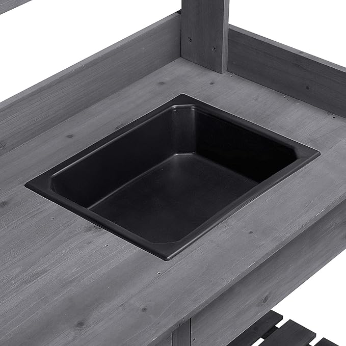 - PRACTICAL & CONVENIENT DESIGNS FOR HORTICULTURE: This waist-height garden potting bench embraces a working and storage area for horticulture. The spacious console features a removable plastic sink, and the storage area comprises a drawer, a 2-layer shelf, an elevated top shelf, and 3 side hooks for ease of use