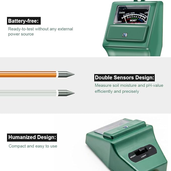 - STURDY AND SCIENTIFIC DESIGN: Reliable materials and upgraded technology used for this soil meter make it advanced and high-quality for long-term use.