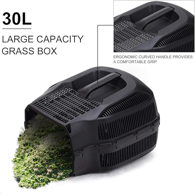 - 【2-in-1 Design & Large Collection Box】Featuring 2-in-1 function, this electric lawn mower meets your needs for mulching or collecting grass by attaching or disassembling collection box. (Two steps to install). Meanwhile, 30L large collection box helps you finish the job quickly and conveniently without dumping the collection box frequently.