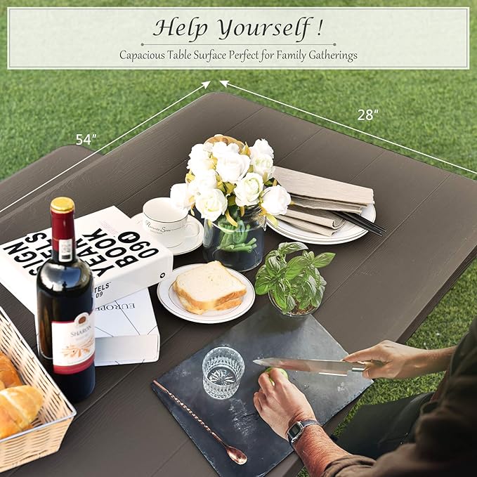 - 【All Weather Resistant and Perfect for Outdoors】 As the outdoor picnic table set, it also has good wear resistance, is tough and cold resistant, ideal for any weather and any place. With UV-protection table surface, it ensures the durability and will not crack, chip or peel. The table and bench surface is also stain resistant and easy to clean, you don't have to spend much time on cleaning.