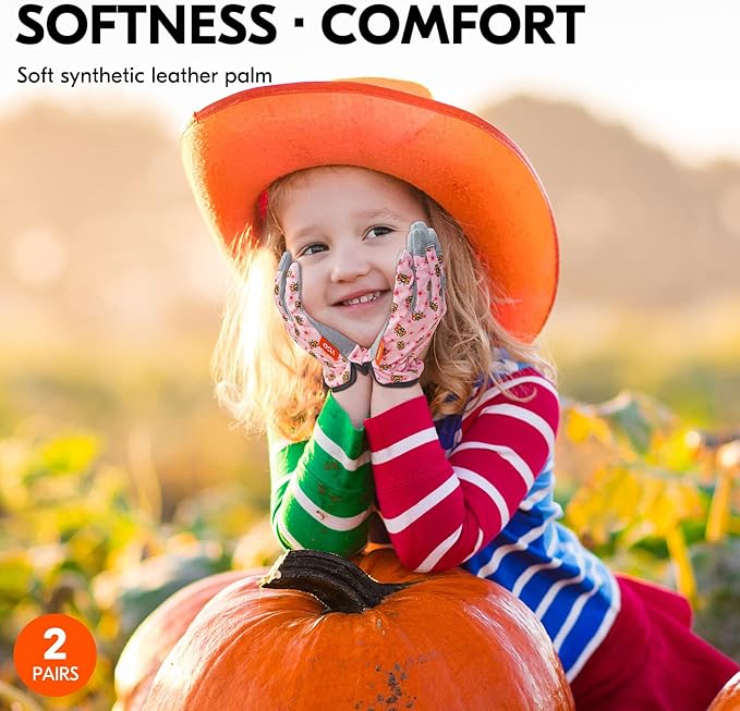 Vgo... 2-Pairs Age 4-5 Kids Gardening Gloves,Children Yard Work Gloves,Soft Safety Outdoor Playing Gloves (Size S, Blue&Pink, KID-MF7362)