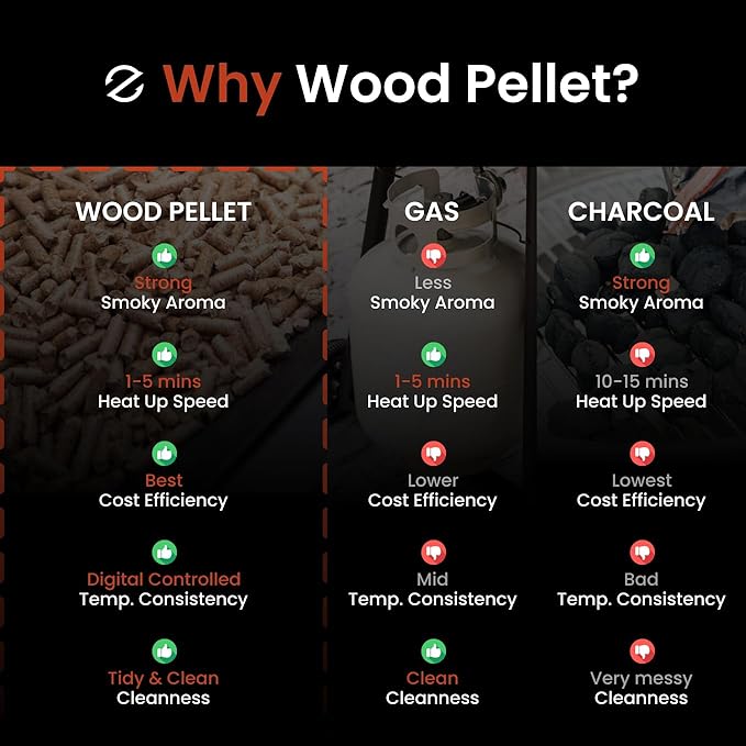 - Pellet Grill Technology--There isn't an easier way to get wood-smoked flavors than with a pellet grill. Try it, and you'll taste the difference from a GAS or CARBON grill.