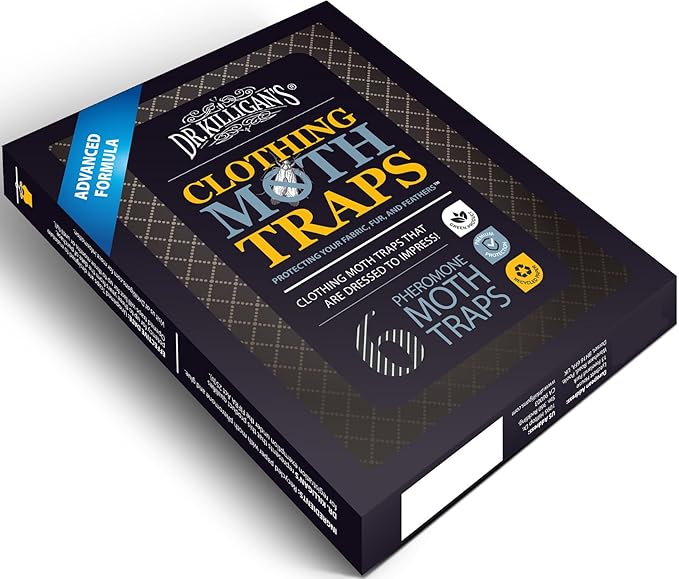 - Organic Solution With Killer Results — Get closet moth protection for your Wool, Cashmere, Fur, Feathers, Carpet and more with Dr. Killigan’s people and pet-friendly moth traps. Our Advanced Formula mixes double-potent pheromones and the stickiest glue to lure and capture ALL adult male clothes moths, and end the reproduction cycle. The complementary design maximizes air flow and increases effectiveness.