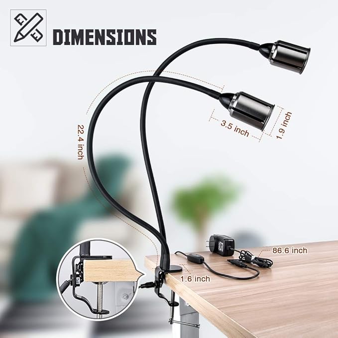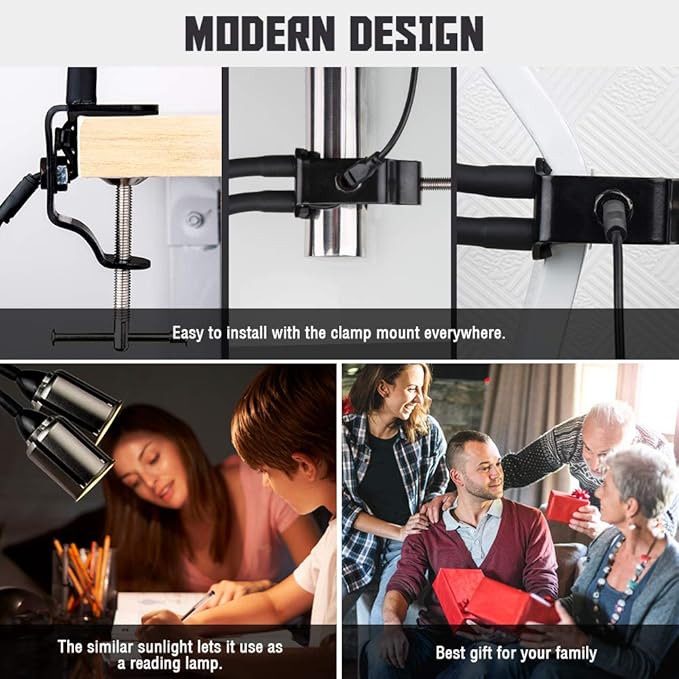 - Easy to Install & Adjust: The C-clamps allow you to securely place the grow lamp in your home, office, or plant stands. The flexible, longer, thicker gooseneck offers 360° rotation, letting you easily adjust the light’s position for optimal coverage