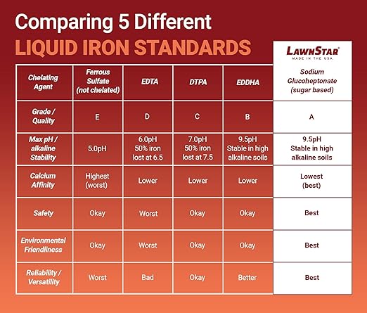 - HIGHLY STABLE FORMULA: Made to remain effective in challenging soil conditions, this liquid lawn fertilizer with iron for plants ensures consistent, reliable iron absorption for long-term results.