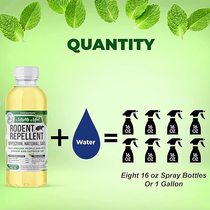 Mighty Mint Peppermint Oil Rodent Repellent Concentrate – Natural Indoor & Outdoor Control for Mice and Rats – Plant-Based, Extra-Strong Formula - 16 oz