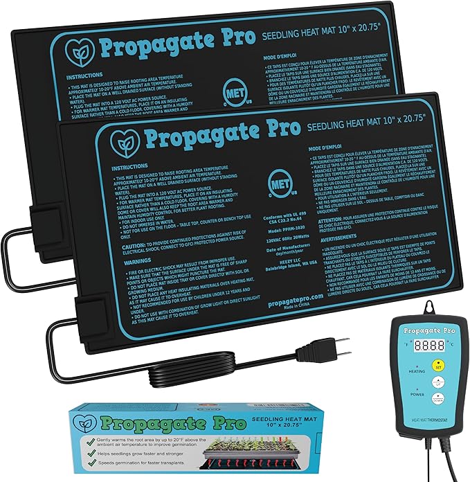 Seedling Heating Mat | Fits (1) Standard 1020 Tray | Germination Grow Heat Pad for Seed & Starter Plants Soil Warmer for Indoor Home Gardening (10x20 Double + Heating Thermostat)