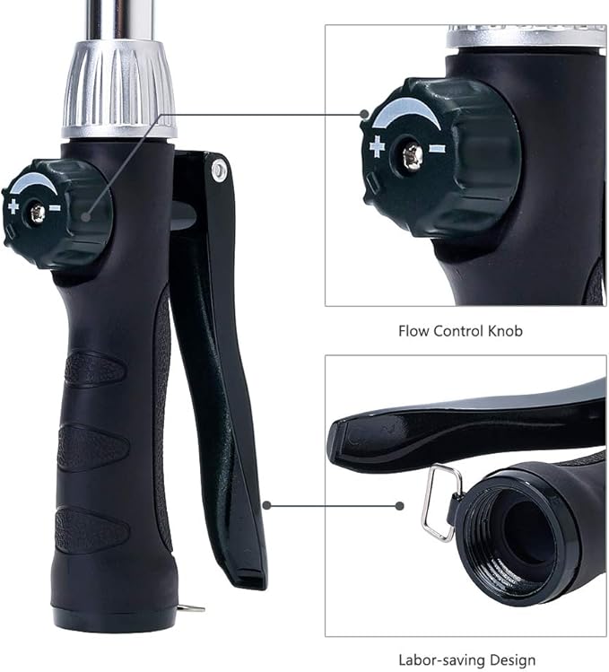 - LABOR-SAVING DESIGN. At the front bottom of the handle there is a hold-open clip for continuous spraying without tiring out your hand. This design of the hose wand is perfect for people with arthritis or disabilities