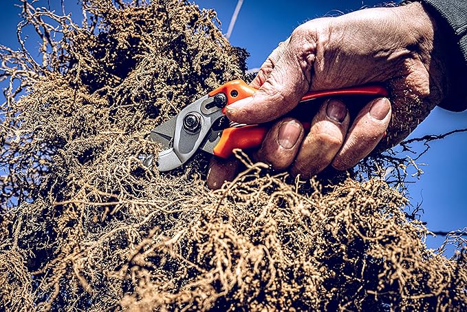 - Thanks to the slightly outward curved shape of the soft plastic handles, the 195 g lightweight pruning shears with standard handle variant optimally follows the natural ergonomics of medium to large hands.