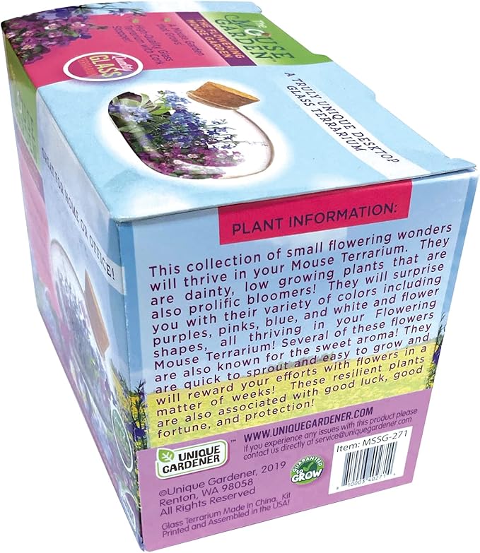 - Easy-to-Grow Flowers: Grow beautiful pink, purple, blue, and white flowers in your own mini glass terrarium garden. The plant can easily be a great decor in any room. The starter kit comes with everything that you need, and growing the plants only requires minimal effort!