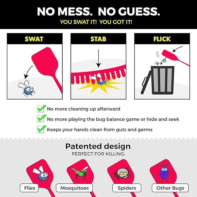 Fly Swatter, 6 Pack Strong Flexible Manual Swat Set, Assorted Colors, Long Range Handles, Indoor and Outdoor Racket for Bug, Mosquito, Bee, Spiders, Flies
