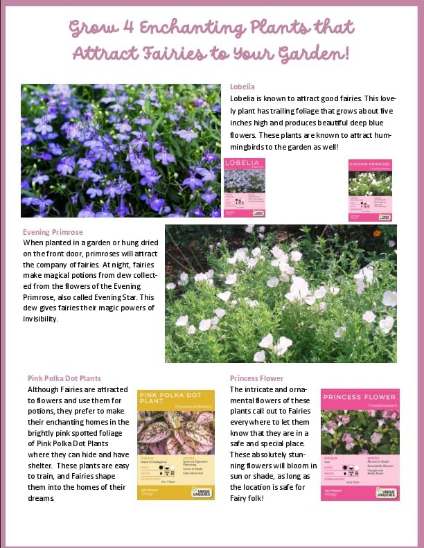 - Enhance Any Space with Color & Delicacy: Elevate your home or office decor with the vibrant colors and delicate beauty of our fairy-loving flowers. Enjoy the delicate beauty of Lobelia, Alyssum, and Evening Primrose—charming plants known for their delightful blooms and ability to attract fairy visitors!
