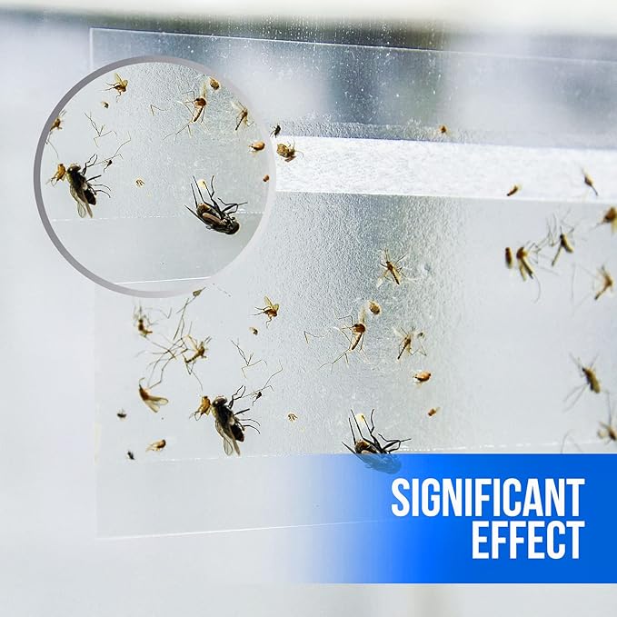 - Effective and Clear : House fly paper ith a fully transparent design and strong light transmission, it attracts flies, house flies, fungus mosquitoes, gnat and most other flying insects, which easily fall into the trap. Plus, won't affect the light transmittance of your window.