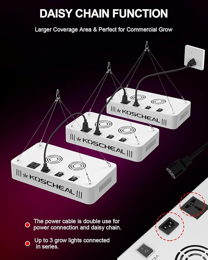 KOSCHEAL KS1200 LED Grow Light Full Spectrum, Plant Grow Light with Veg & Bloom Switch for Hydroponic Indoor Plants LED Grow Lamp with Daisy Chain, Output 130W±5%
