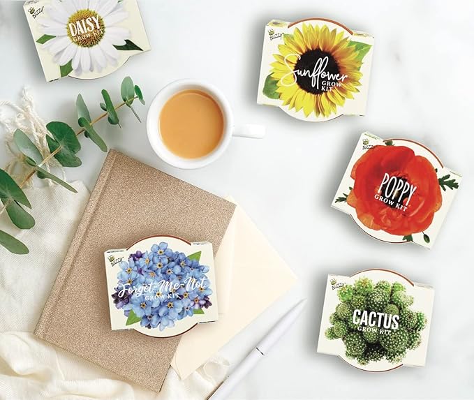 - Assorted 12-Pack: The bestselling Daydream Collection includes terracotta pots and seeds to grow Sunflowers, Daisies, Poppies, Cacti and Forget-Me-Nots.