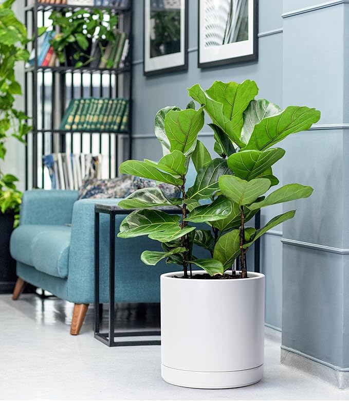 D'vine Dev 8.2 Inch & 10 Inch Ceramic Planter Pot for Plants with Drainage Hole and Saucer, Large Plant Pots Set, White, 94-G-L-1
