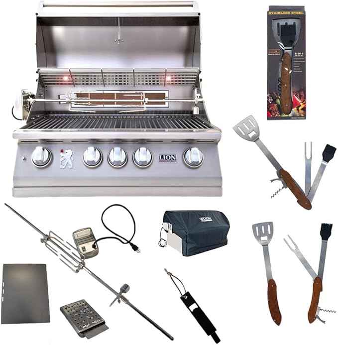Lion Premium Grills 32-Inch Liquid Propane Grill L75000 with Exclusive Best of Backyard Gourmet Package