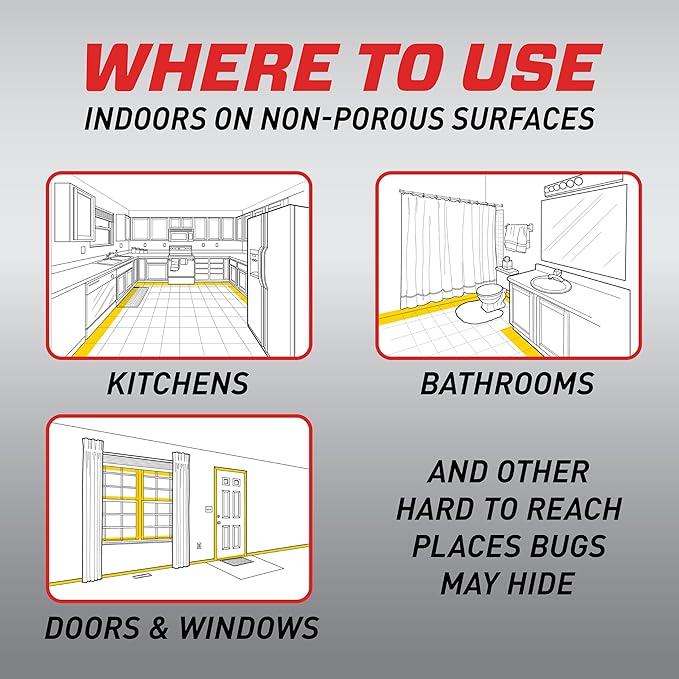 - USE INDOORS: Kill insects anywhere in your home, including kitchens, family rooms & pantries; starts to kill insects fast after you see activity & works as a preventative treatment to keep killing ants, roaches & spiders indoors on nonporous surfaces