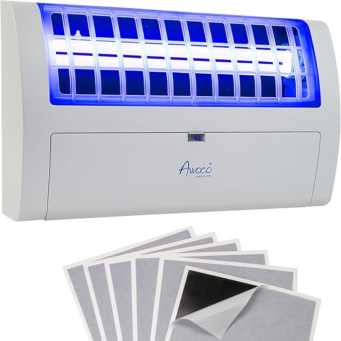 Awoco LED 13W 100V-240V Wall Mount Sticky Fly Trap Lamp for Capturing Flies, Mosquitoes, Moths and Flying Insects (Fly Trap + 6 Glue Boards)