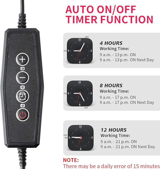 - 【Auto On/Off Timing Function】GHodec indoor plant lights offer 3 timing options-4H/8H/12H lighting time everyday. Auto on/off and no more manually operation everyday.Each LED bar can control its on/off separately. You can press the switch button multiple times -- one light ON, two lights ON, or all are off.You can also adjust the brightness of the led grow lamp according to your plants needs.