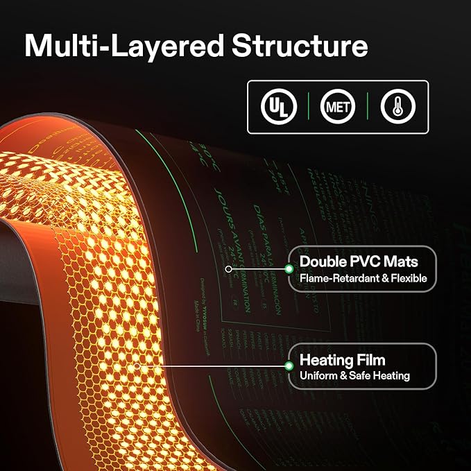 - Reliable Results: The VIVOSUN professional heat mat maintains optimal temperatures around 68-86℉ (20-30℃), perfect for Seedling start and cutting propagation; Made from durable PVC material, it's designed to last