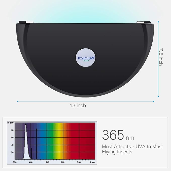 Faicuk WS108 Wall Sconce Fly Light Trap for Capturing Flies, Moths, Gnats, Mosquitos and Other Flying Insects - 13"x7.5"x5.5" (Black)