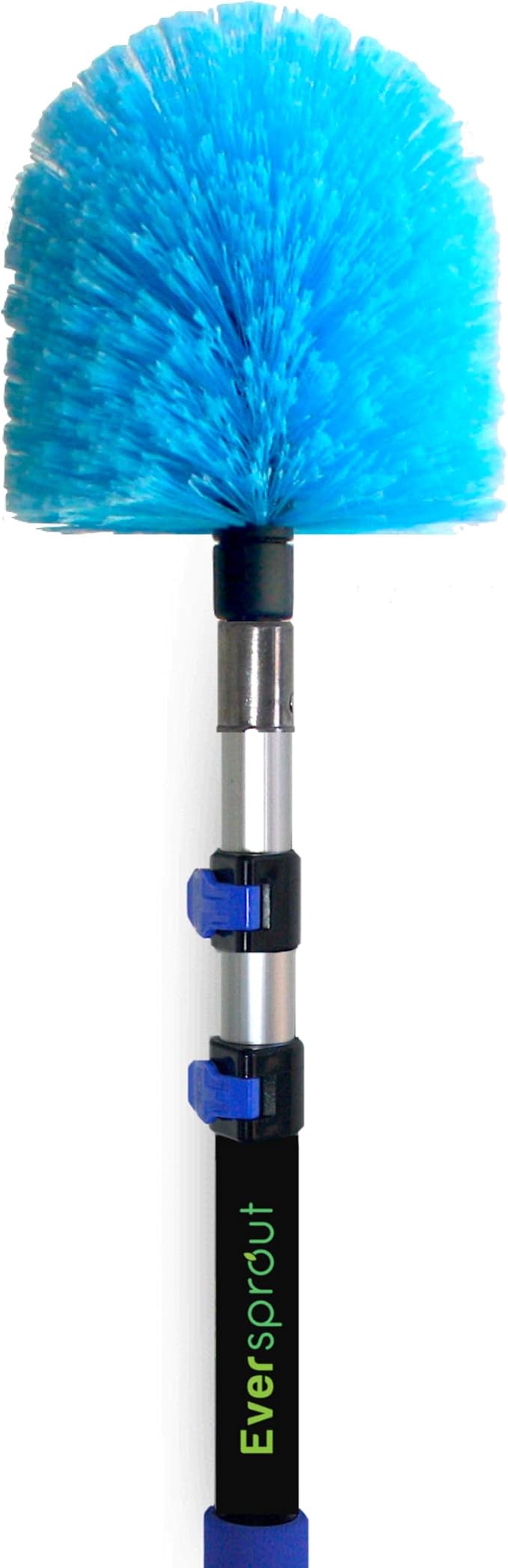 EVERSPROUT 1.5-to-3 Foot Cobweb Duster and Extension-Pole Combo (8-10 Ft Standing Reach, Soft Bristles) | Hand Packaged | Lightweight, 3-Stage Aluminum Pole | Indoor & Outdoor Use Brush Attachment