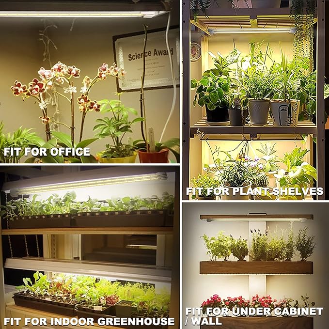 - Easy and Flexible Installation -The grow light bar pack comes with screws and a double-sided tape (pls cut into 2 pieces when applied). Compact design fits for various fixtures and surfaces. The power cord is 78 inches long for easy using in office,indoor,plant shelf,greenhouse etc