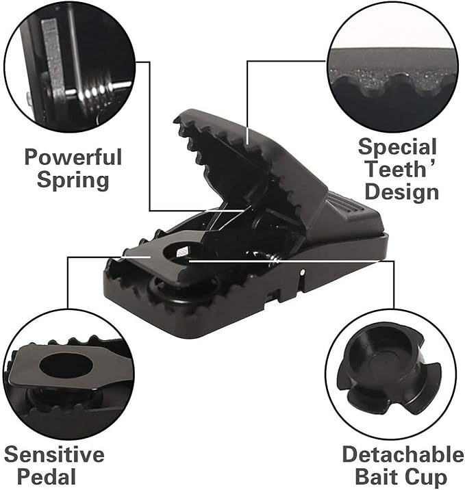 - Easy to use and set - Just put a bait in the cup, and put it back to the mouse trap, keep the trap clamp open, you can place the mouse traps both outdoor and indoor use.
